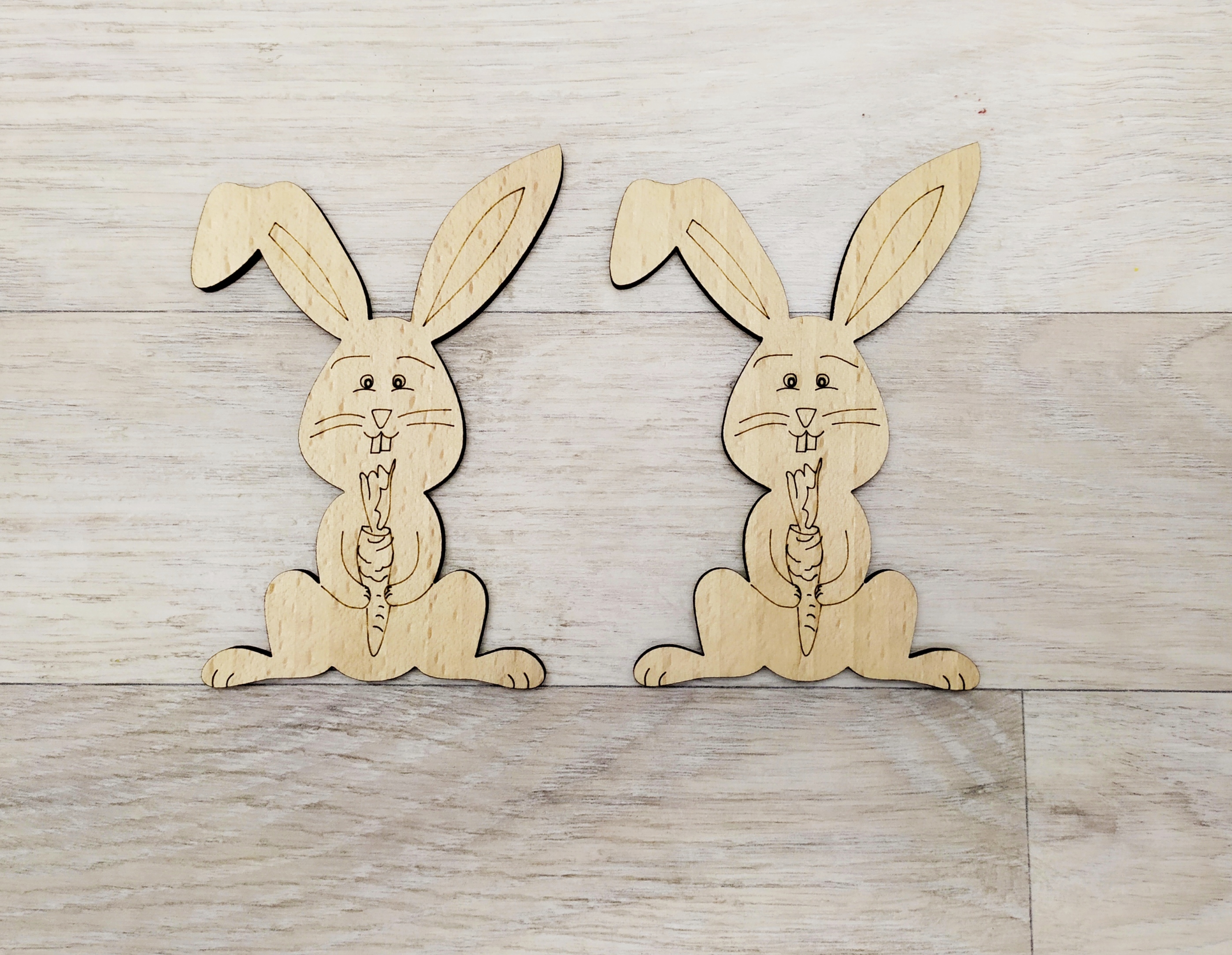 N. 2 coniglietti piccoli in legno cm. 6,5 x altezza 9,5 spessore mm.4