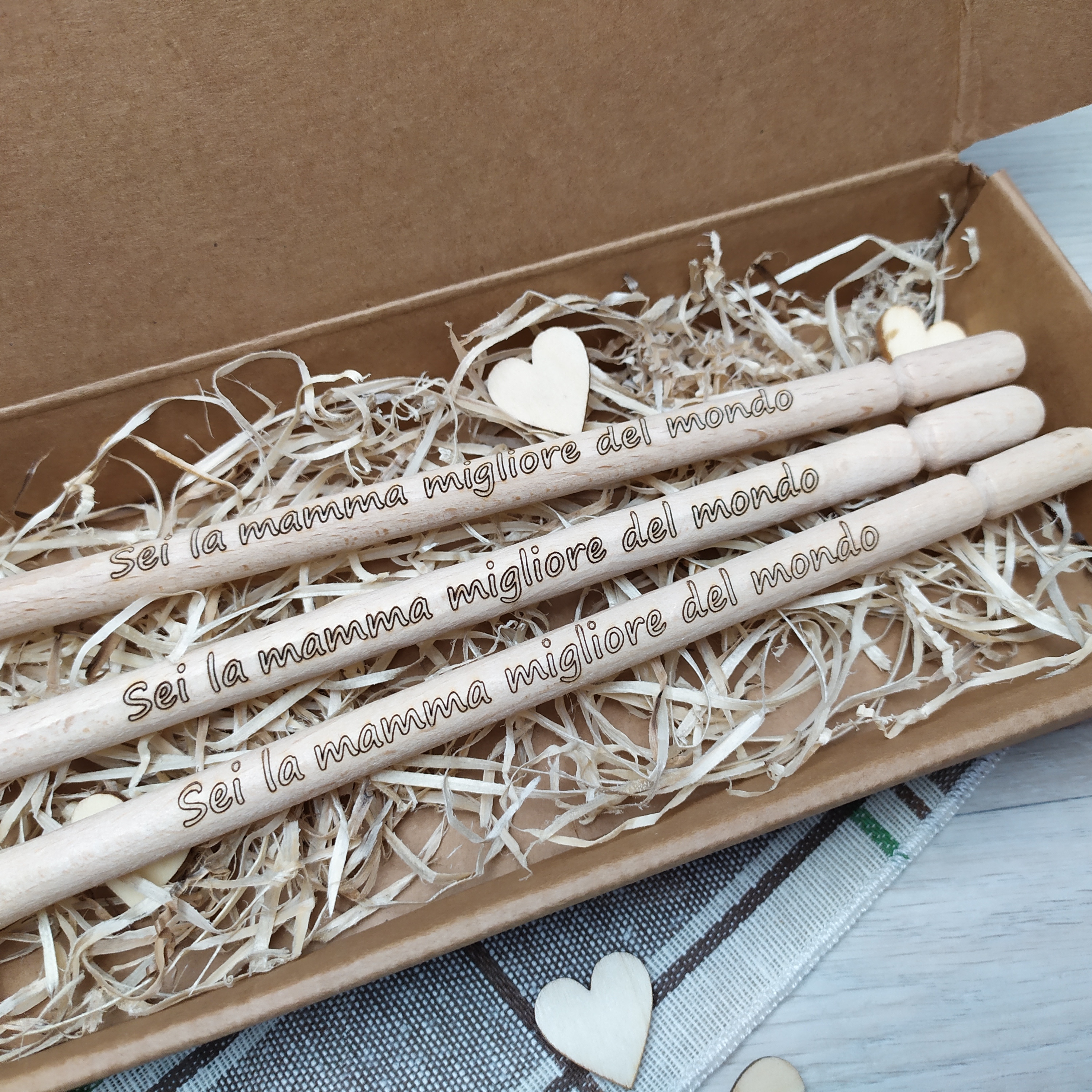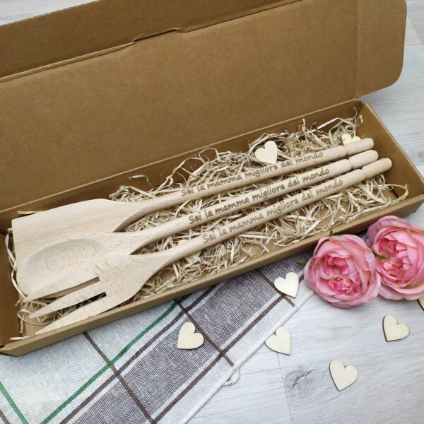 Tre posate in legno con incisione laser “Sei la mamma migliore del mondo”